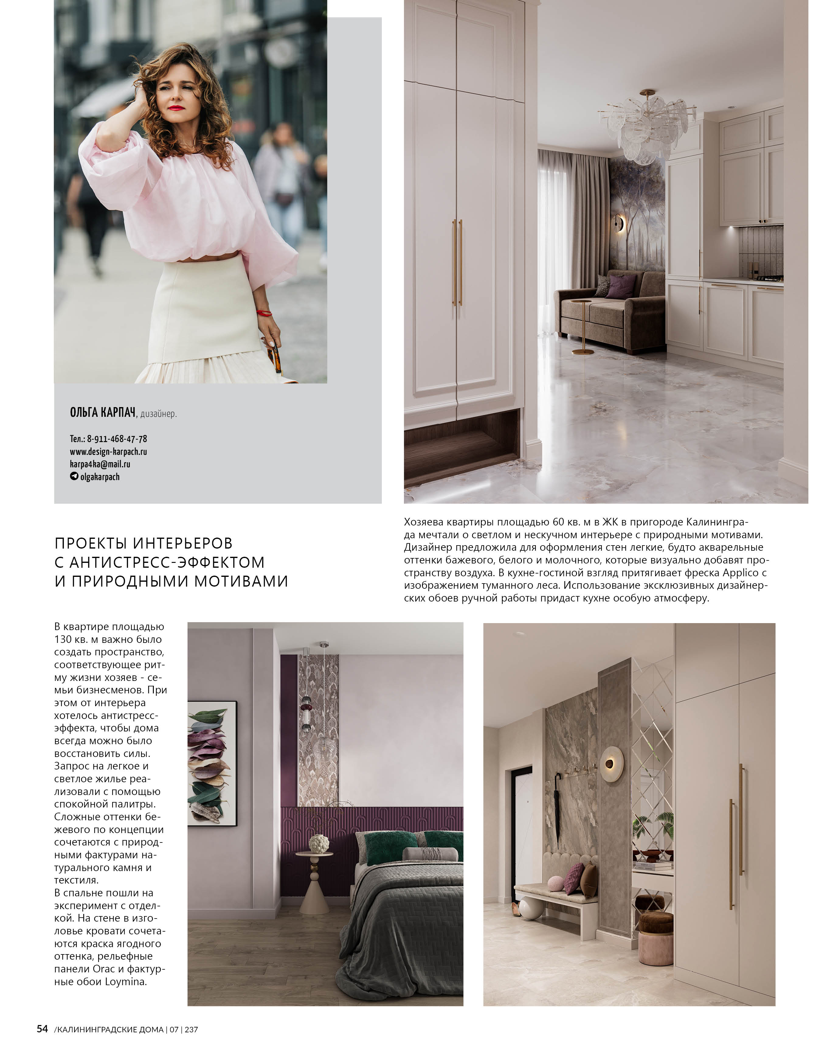 Меня зовут Ольга Карпач. Я дизайнер интерьеров для жизни.